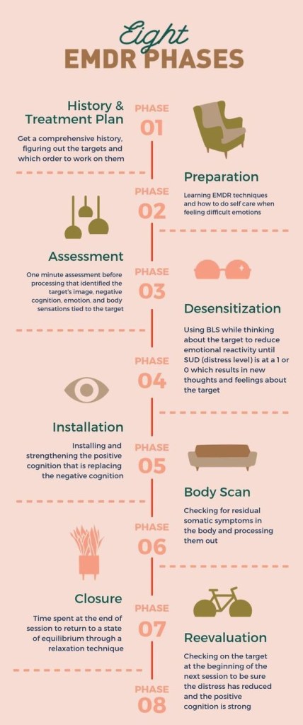 In the final phase, we reevaluate your newly reprocessed memories. We talk about changes you’ve noticed and what goals you’d like to focus on next.