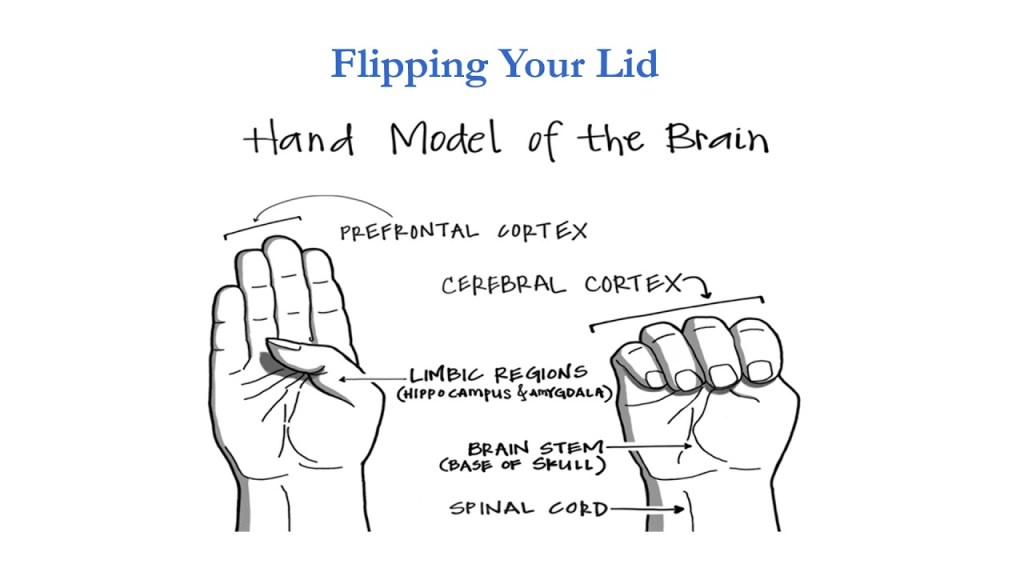 Survival Brain Develops First– Four Part Brain” graphic shows the time sequence from the bottom up