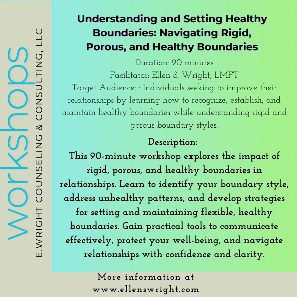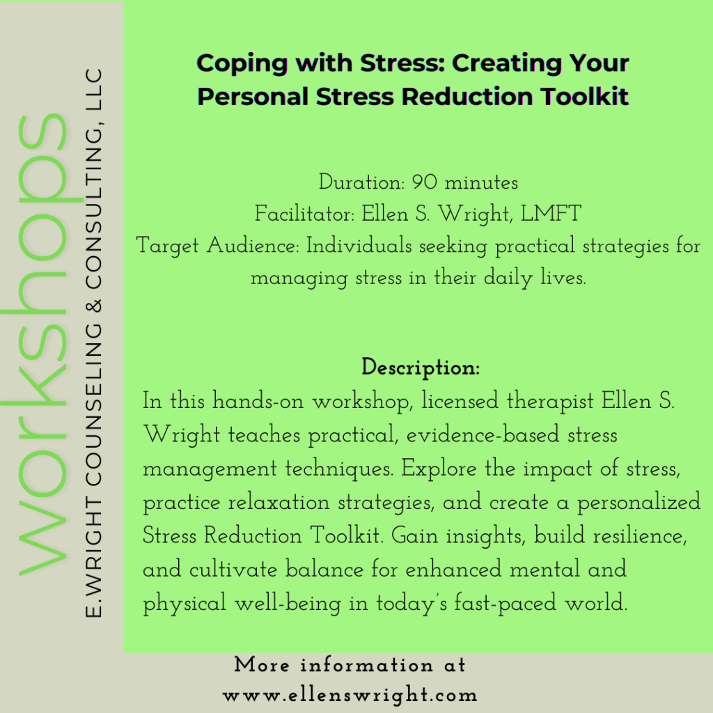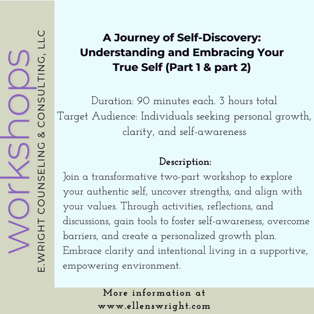 I am excited to announce my new series of mental health workshops, designed to help you build resilience, develop healthy coping strategies, and foster a positive mindset. Whether you’re looking to manage stress, enhance your emotional well-being, or connect with others, our workshops offer a supportive and empowering environment to grow.